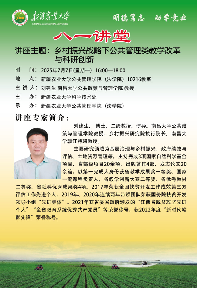 【八一讲堂预告】九十八期:乡村振兴战略下公共管理类教学改革与科研创新