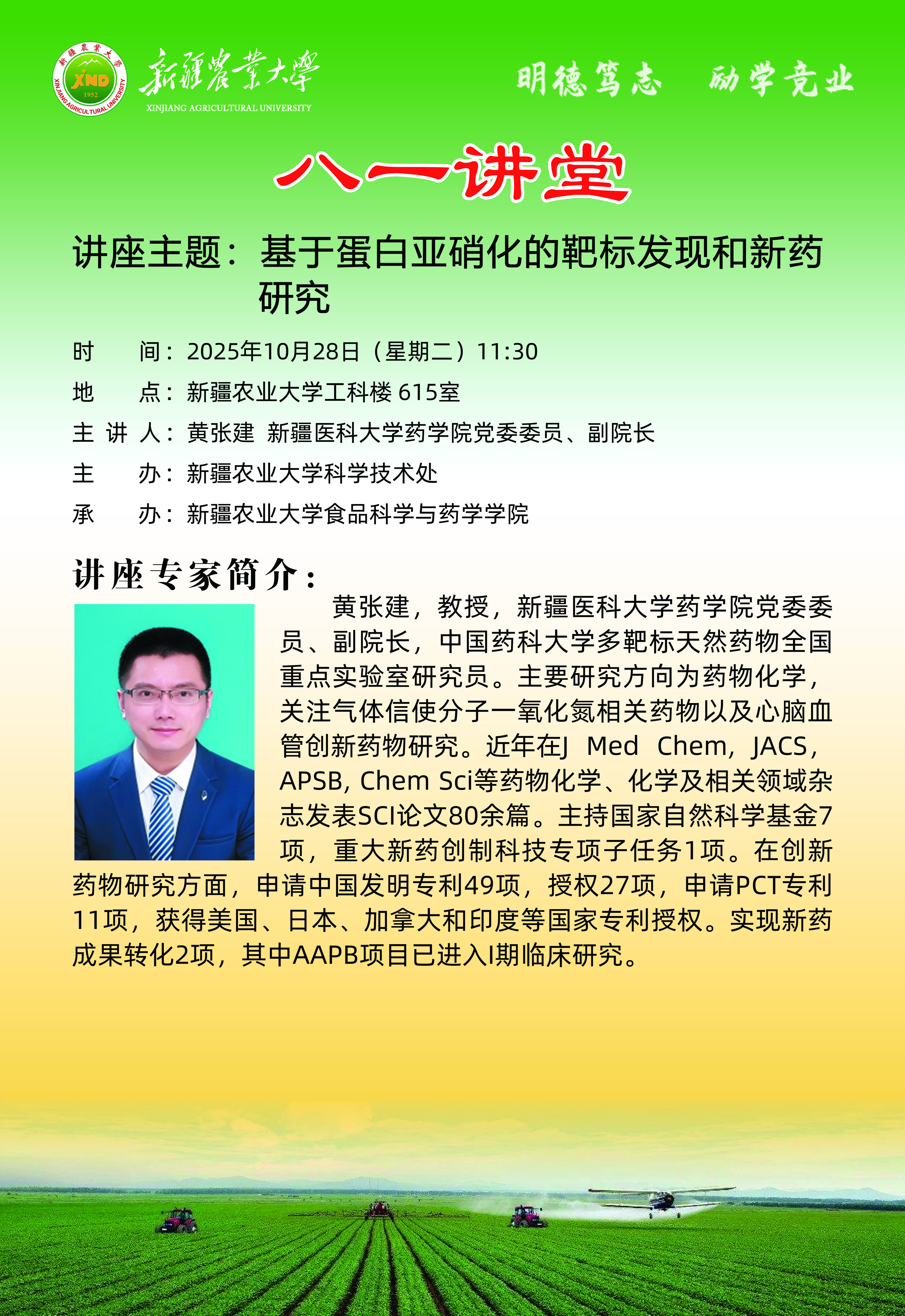【八一讲堂预告】一百零五期:基于蛋白亚硝化的靶标发现和新药研究