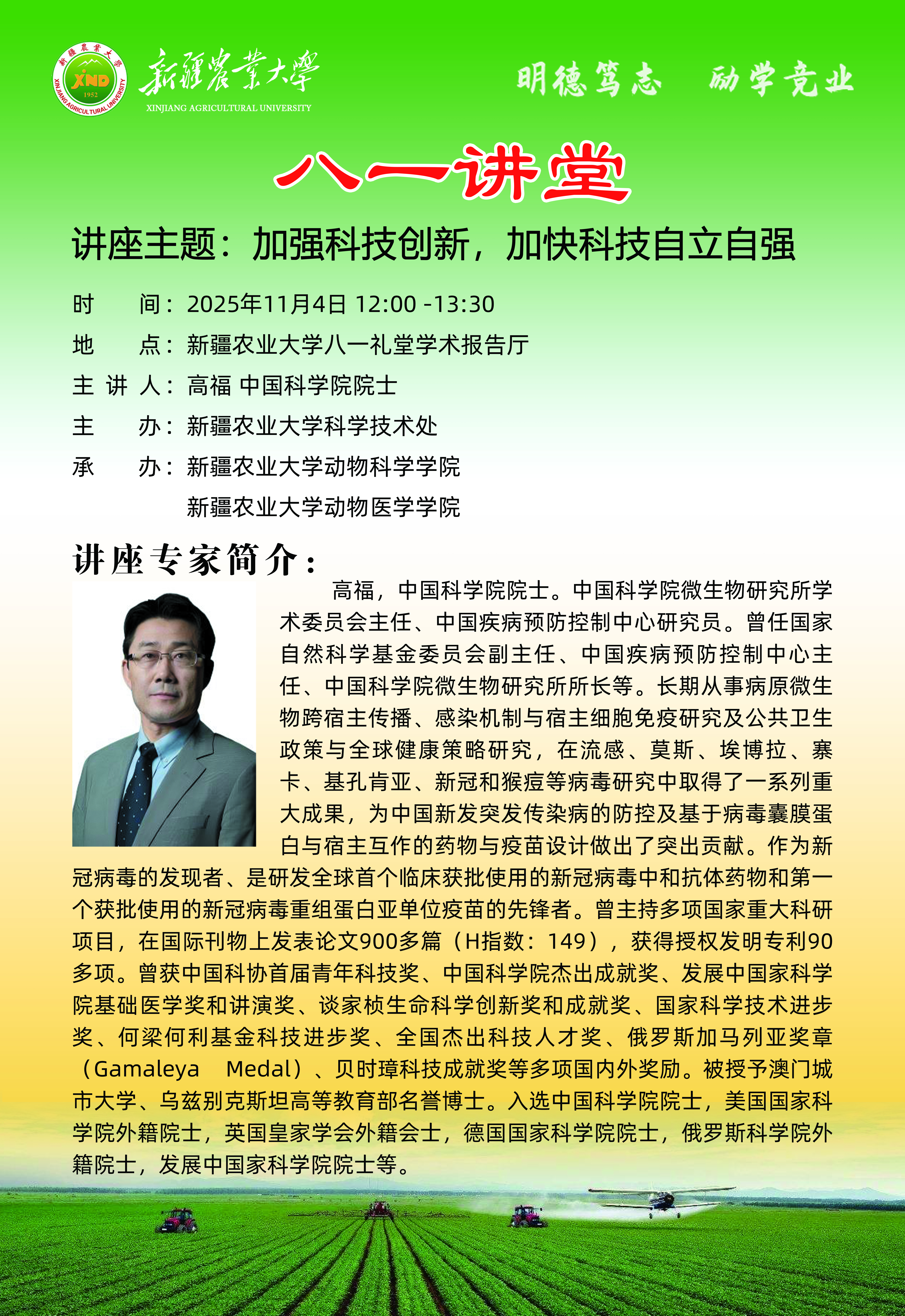 【八一讲堂预告】一百零七期:加强科技创新,加快科技自立自强