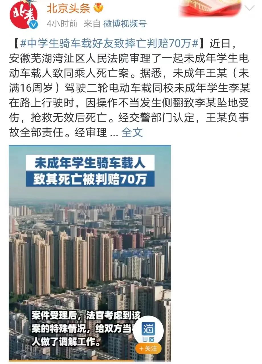 学生电动车载人致同乘人死亡案