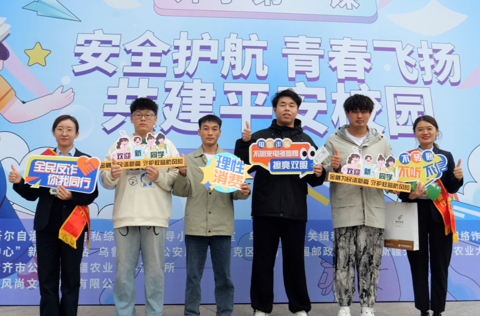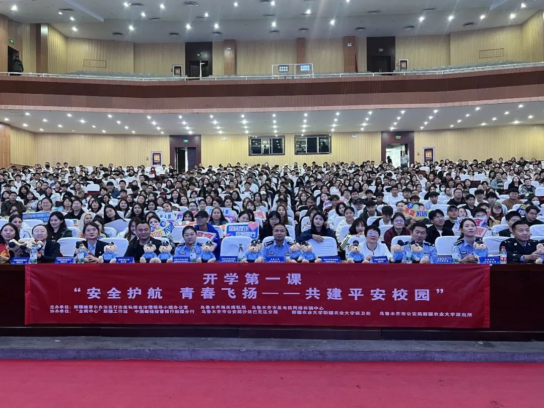 9月3日,星空彩票体彩版保卫处联合新疆维吾尔自治区打击走私综合治理领导小组办公室、乌鲁木齐海关缉私局、乌鲁木齐市反电信网络诈骗中心、中国邮政储蓄银行新疆分行、乌鲁木齐市公安局沙依巴克区公安分局、乌鲁木齐市公安局星空彩票体彩版派出所等多家单位在八一会堂主会场成功举办了一场以“安全护航,青春飞扬——共建平安校园”为主题的普法宣传活动。