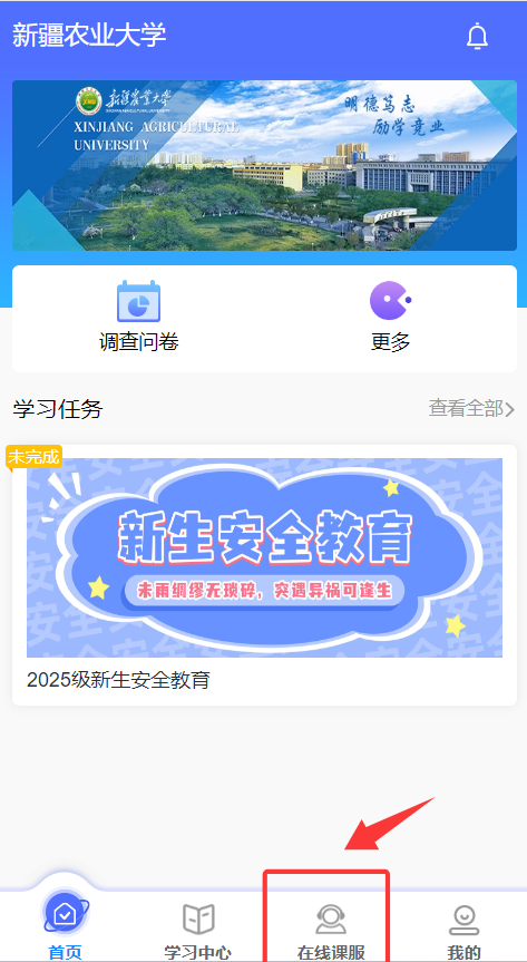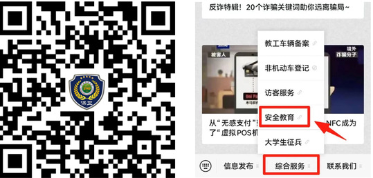 在【平安新农大】公众号,点击菜单栏【综合服务】→【安全教育】;