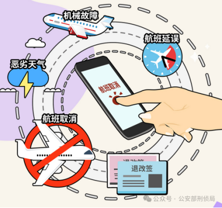暑期是同学们出行的高峰期。机票退改签诈骗,是指诈骗分子非法获取受害者购票信息后,冒充航空公司客服,以飞机故障、航班延迟为由,主动提出退款、理赔或改签服务,诱导受害者点击链接进而实施诈骗。