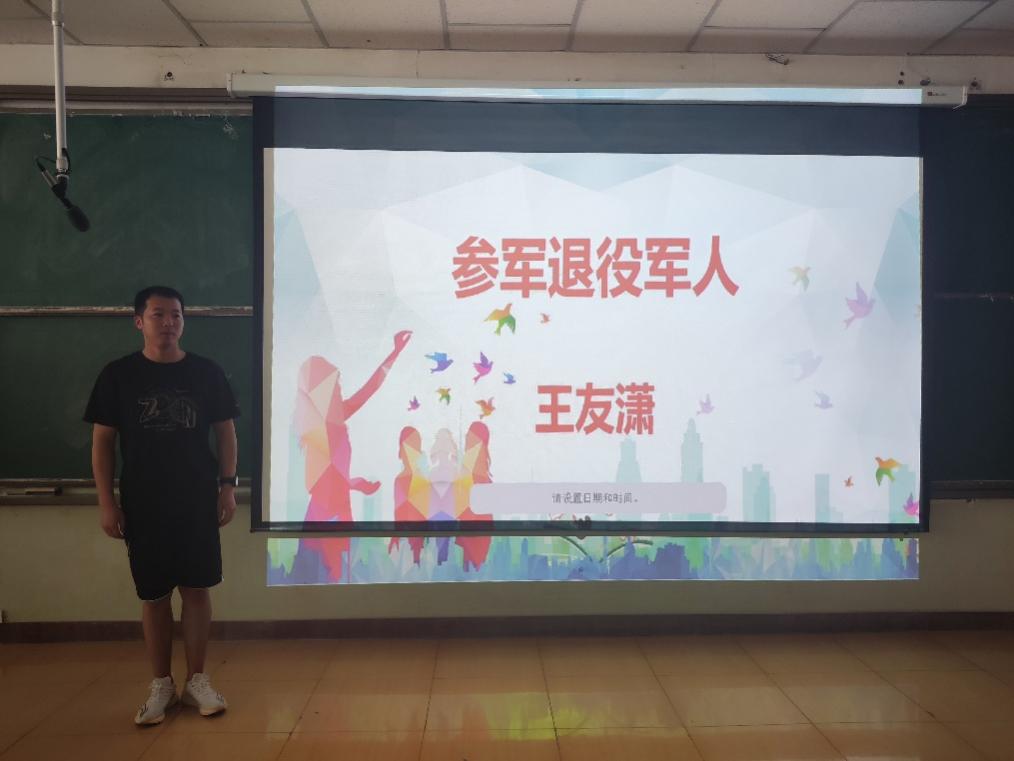 参军退役军人王友潇结合自己海军服役经历,从入营开始的训练日常,到参与各项战备保障任务详细讲解了部队生活的方方面面,以自身经历号鼓励同学们踊跃参军,投身到祖国的强军事业当中去,用脚步丈量祖国大地,不负青年理想,不负国家期望。