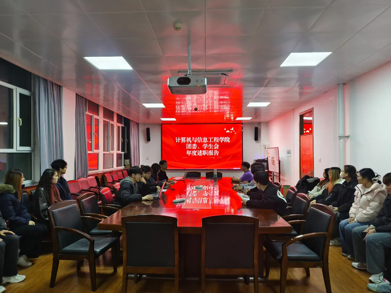为全面总结年度工作成效,查摆问题短板,明确后续发展方向,进一步提升学生组织服务效能与团队凝聚力,近日,计算机与信息工程学院团委、学生会年底述职评议会顺利召开。学工办主任刘泽昊老师及团委、学生会全体成员参加会议。