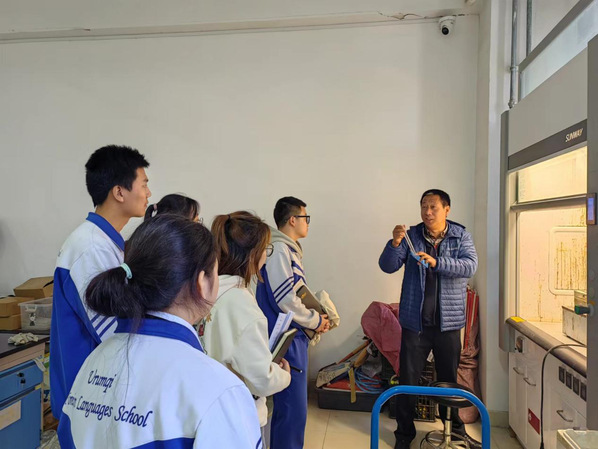 孩子们充满朝气,满怀好奇。郑伟副院长热情地接待了这些年轻的来访者。郑伟副院长是业界权威,他是中国陆地生态系统固碳效应-中国科学院战略性先导科技专项固碳任务中新疆草地生态系统的碳固定研究的主要负责人。他带领孩子们参观了新农大草业学院的实验室和研究基地,他通过深入浅出的讲解和生动的演示,向高中生们介绍了陆地生态系统固碳效应研究的前沿进展和研究的总体思路,特别强调了这项研究的重要性——准确的数据,能够增强我国在国际谈判的话语权。学生们聚精会神地聆听着,不时发出阵阵惊叹。郑院长还向学生们展示了各种先进的仪器设备和实验样本,让学生们直观地感受到了科学研究的严谨与魅力。