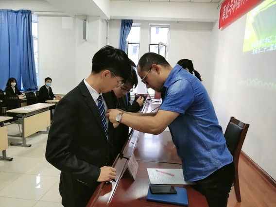 随后,葛倚汀副书记以及辅导员阿垦里白·木赛老师为主席团成员授发工牌,再由主席团成员为学生干部颁发工牌。
