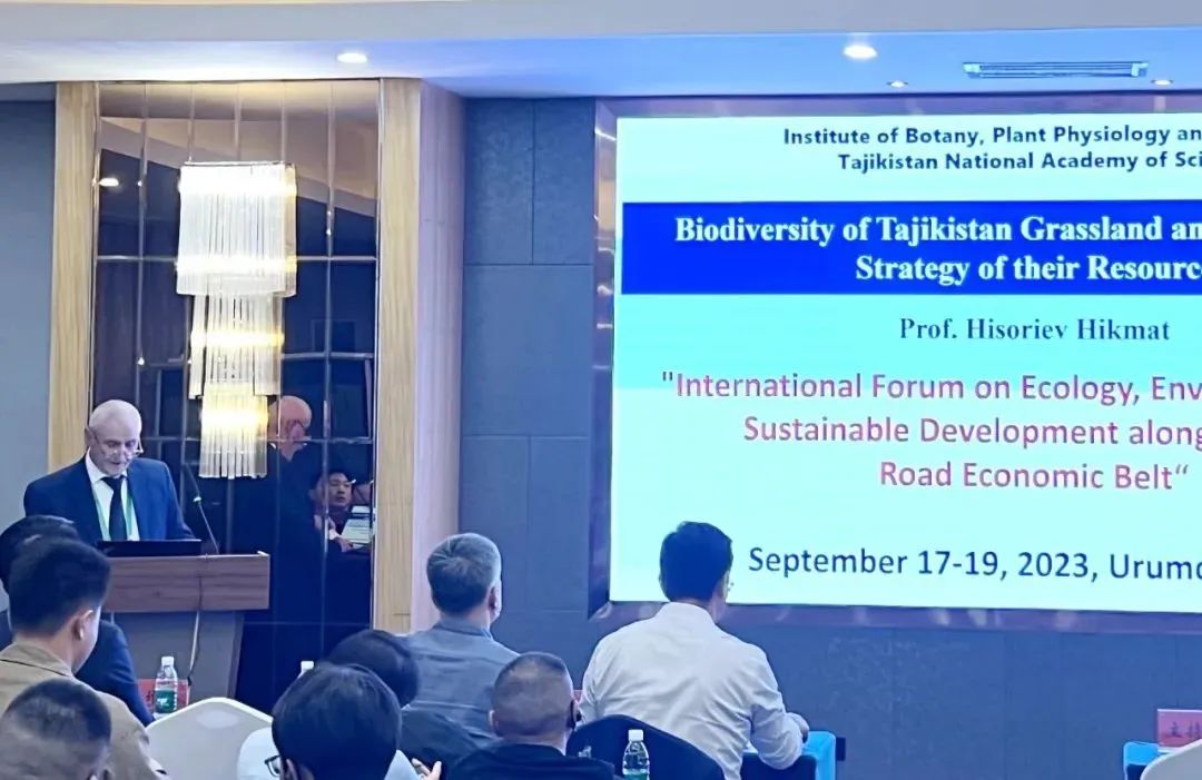 塔吉克斯坦国家科学院院士黑克马特·黑索里耶夫在《塔吉克斯坦草原生物多样性及其保护策略》报告中向与会嘉宾介绍了本国草原生物系统现状及保护措施。他表示,塔吉克斯坦植物生长、自然环境与中国新疆相似,希望通过本次交流进一步了解中国在干旱区草业发展方面的经验与成果,整合双方资源、科研优势,开展干旱区草业可持续发展相关领域的合作。