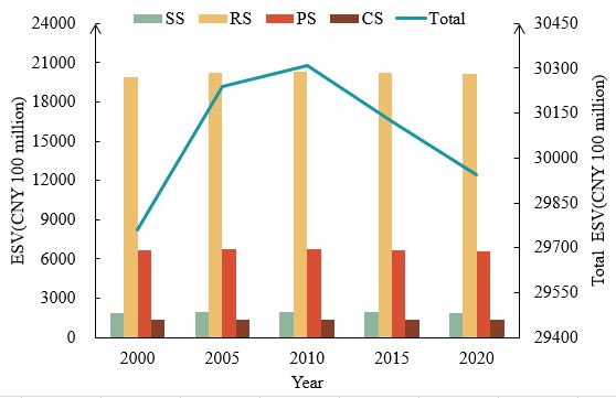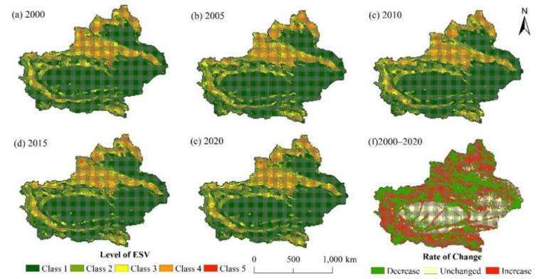 Zhang, S.; Wang, Y.; Xu, W.; Sheng, Z.; Zhu, Z.; Hou, Y. Analysis of Spatial and Temporal Variability of Ecosystem Service Values and Their Spatial Correlation in Xinjiang, China. Remote Sens. 2023, 15, 4861.