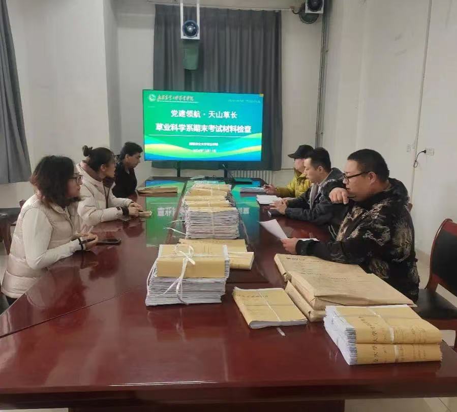 在“党建+教学”为主题的“三会一课”中,通过“第一议题”强化教师思想政治素养,在此基础上进一步落实“党建+教学”制度,发挥党员教师的示范引领作用,加强对课程考核各环节的质量监控,强化试卷、非试卷类教学档案材料的科学性和规范性,进一步提高课程评价质量,1月2日上午,草业科学系在学院二楼会议室开展期末考试材料专项检查。