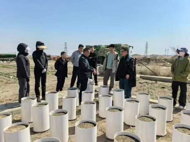 412日至413日,执行院长张万军一行前往新疆塔城地区乌苏市“甘家湖梭梭荒漠草地有害生物研究科技小院”及“博乐乡土草种繁育及生态修复科技小院”进行考察。甘家湖梭梭林国家级自然保护区管理局乌苏管理分局李然局长、博乐市林业和草原局草原工作站站长管廷贤和基地导师刘兴义分别介绍了科技小院的建设情况。科技小院负责人杨素文老师、董乙强老师陪同。