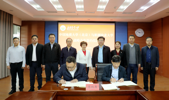 许高勇对我校与中国地质大学(北京)签署战略合作协议表示祝贺。他表示,新疆高等教育正处于向高质量发展的关键阶段,两校在这个关键阶段签订战略合作协议是一件大喜事。他希望中国地质大学(北京)能够在人才队伍建设、学科专业建设、高水平科研平台建设、国际合作交流等方面给予星空彩票体彩版更多的帮助支持;希望农大发挥主体作用,更加积极主动地与中国地质大学(北京)加强沟通对接,把合作协议落地落实,期待两校合作有更多实质性的成果。他希望援疆干部发挥好纽带作用,助力农大事业高质量发展,提升自治区高等教育的贡献力和影响力。