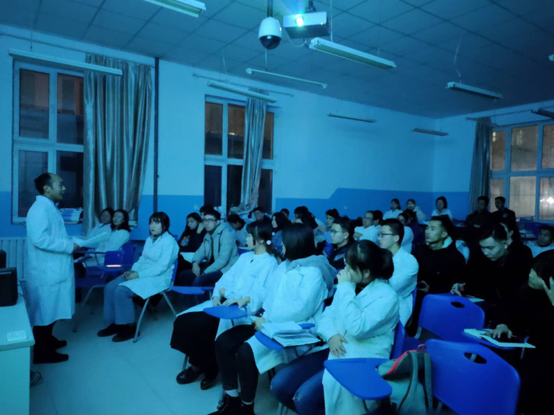 鉴于实习生较多为了更好地,系统的学习实践知识,我院分阶段,分模块进行培养,将学生分为三大模块:住院+手术;检验;门诊。将所有学生分为三组,每组同学分别实践这三大块内容,待一个月后,进行相互轮换。每组同学由一名医生负责日常管理。每两周开一次经验交流会,老师会拿出典型病例和学生分享,学生也会做报告,讲述这两周学到的内容。