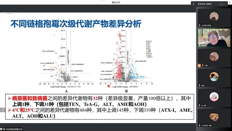 李彦伸教授通过介绍基于高分辨质谱及数据可视化分析的链格孢霉菌产毒研究,向同学们详细讲解了一种高分辨质谱数据可视化分析技术,并通过实验莱阳梨侵染链格孢霉菌表明:4℃不是绝对安全的果蔬贮藏温度,此外还提及腐生链格孢霉菌产毒素的种类和含量均高于致病菌。