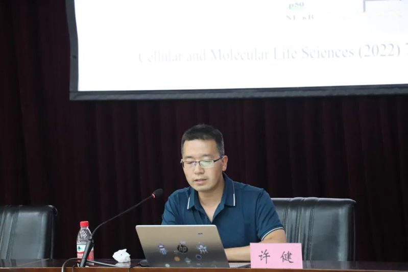 随后,许健老师也分享了自己在畜牧兽医方面的研究成果——RNA解螺旋酶DDX5在天然免疫调节中的作用机制研究。他用精彩而深入浅出的语言,向同学们展示了科技创新的最新成果,激发了同学们的学术研究灵感,引起台下阵阵热烈的掌声。他还分享研究方法经验,拓宽了动医学子的科研思路。