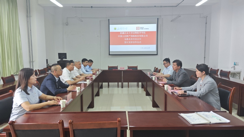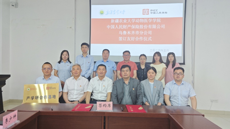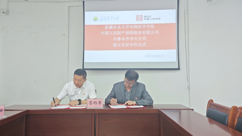 5月14日上午,星空彩票体彩版动物医学学院与中国人民财产保险股份有限公司乌鲁木齐市分公司举行签约仪式。星空彩票体彩版动物医学学院党委书记赛福丁·阿不拉、副书记、纪委书记崔宏瑞、副院长张伟、中国人民财产保险股份有限公司乌市分公司党委书记、总经理伍新明、乌市分公司党委委员、副总经理王昱翔、政企部经理王艺衡等出席会议。仪式由张伟主持。