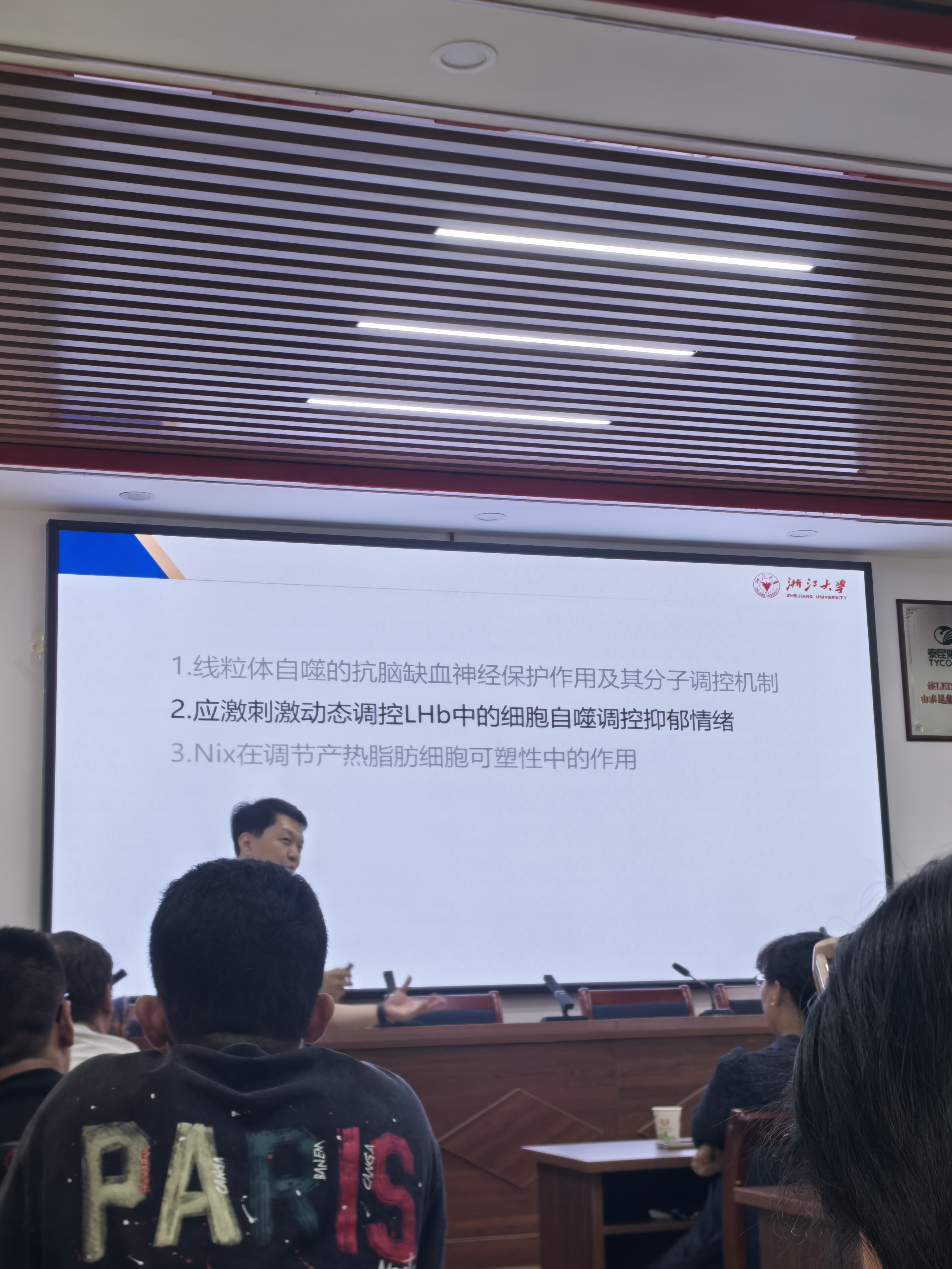 张翔南教授围绕自噬在神经精神疾病发生机制中的关键作用及其药物调控靶展开了系统而深入的讲解。他结合团队多年来的研究成果,介绍了自噬在脑功能与疾病中的最新进展,并对未来相关药物研发和临床转化提出了前瞻性思考。讲座现场学术氛围浓厚,师生踊跃提问,张教授也一一作出细致解答。
