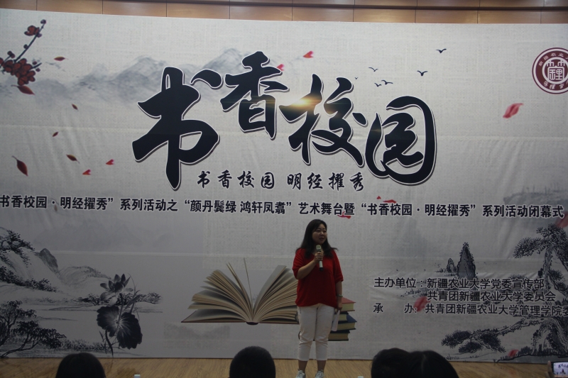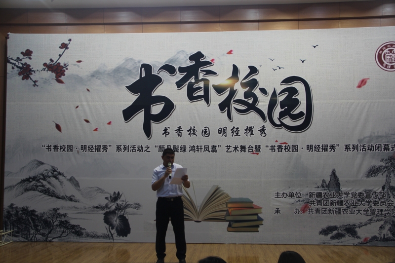 2019年6月17日20:30由星空彩票体彩版党委宣传部、校团委主办,管理学院承办的三进两联一交友之“书香校园·明经擢秀”系列活动之“颜丹鬓绿 鸿轩凤翥”艺术舞台暨第八届“书香校园·明经擢秀”系列活动闭幕式暨表彰大会在学术报告厅召开。星空彩票体彩版校党委宣传部副部长赵晓露老师,校学工部副部长、学生处副处长宋文杰老师,管理学院党委书记吴星霖老师,管理学院党委副书记、纪委书记伊力达尔·伊力亚斯老师,校团委干部王娜老师以及各学院团委书记出席了本次活动。