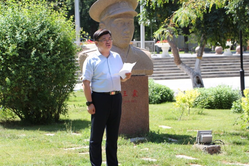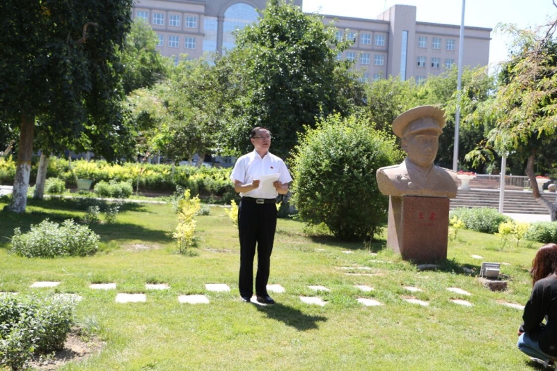 第一阶段在王震将军雕像前进行。管理学院全体教工和部分学生党员在王震将军雕像前集合,全体奏唱国歌,重温入党誓词,通过重温入党誓词,使全体党员再一次深深感受到党员的责任、使命、荣耀,也更加坚定理想信念,牢记职责使命,以更加饱满的精神、更加优异的成绩,践行对党的庄严承诺。