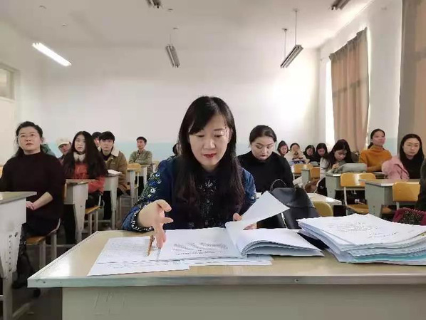 第二组评审老师:杨晓萍老师、韩芳老师、朱峰老师、校教学督导郭兰老师、秘书畅文杰老师。