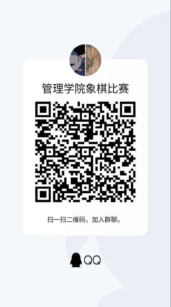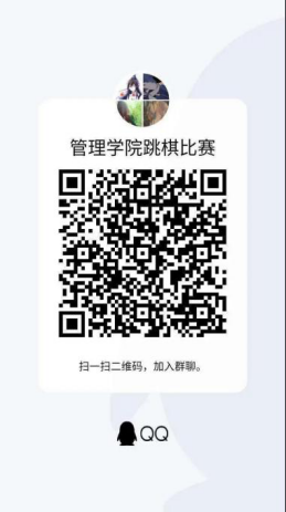此次比赛通过线上的方式进行报名,扫描二维码进入qq群,填写完报名表后发送至指定邮箱2326969930@qq.com。由于受疫情和时间条件的影响,各参赛小组采用手机面对面的方式进行比赛。各项目比赛必须严格按照比赛规则进行比赛,比赛均需遵守国际棋类基本准则,以确保此次比赛的公平公正公开。
