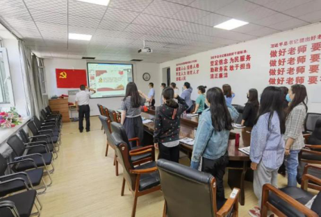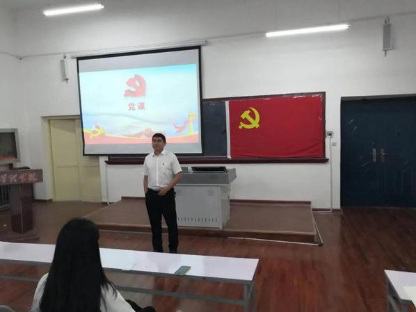 2020年6月21日,管理学院本科生各党支部在管理学院二楼10216教室举行了新党员入党仪式,参加本次活动的有管理学院党委副书记、纪委书记伊力达尔·伊力亚斯老师、学工办全体辅导员老师以及管理学院本科生各党支部全体党员。