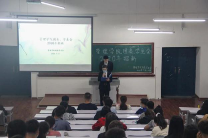 为了扩大管理学院团委、学生会团队,进一步挖掘人才,给更多的同学以展示和锻炼的舞台,也进一步发挥团学会作为学校联系广大同学之间的桥梁纽带作用,管理学院团委、学生会于2020年7月12日21:00分别在管理学院10115、10216教室举办了“管理学院团委、学生会2020年招新”活动。