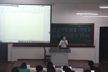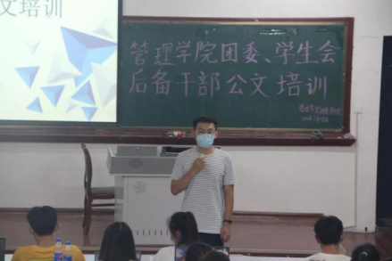 为提高管理学院团委、学生会后备干部的公文写作水平,确保各项活动能够顺利进行,提高学生会成员整体素质,加强学生会各部门成员之间的交流合作,培养学生整体和谐融洽的氛围,从而使全体成员从思想上重视公文写作,行动上使公文格式更加规范化、标准化。管理学院特此于2020年7月18日20:30在10115教室开展管理学院团委、学生会后备干部公文培训活动。