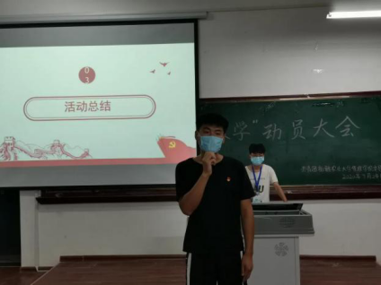 活动接近尾声,城管182班的预备党员王龙同学进行总结发言,他肯定了“双学”活动的重要性,号召党员要发挥先锋模范作用,共青团员应该主动学党章、学理论,积极向党组织靠拢。