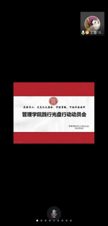 2020年8月11日晚20点,管理学院通过腾讯会议线上举办了光盘行动动员会,张俊杰老师参与活动,并和同学们一起学习了《习近平对制止餐饮浪费做出重要指示》。