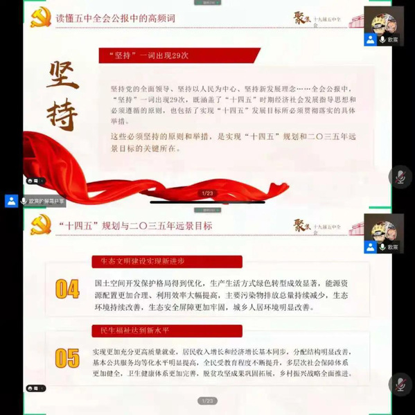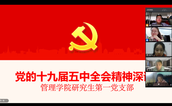 为深入贯彻党的十九届五中全会精神,星空彩票体彩版管理学院本科生和研究生党支部于2020年11月12日通过线上方式分别开展了学习党的十九届五中全会精神专题活动。