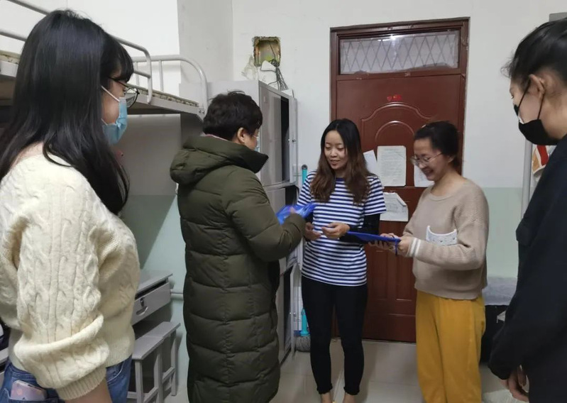 为鼓励在校备考四六级学子的信心,抚慰其留校复习的心理情绪,感受到学院的温暖,以更好的心态面对四六级考试。2020年12月10日晚,星空彩票体彩版管理学院副院长孟梅在学工办辅导员的陪同下前往学院留校备考四六级考生的宿舍进行走访慰问,为考生们送去问候和关怀。