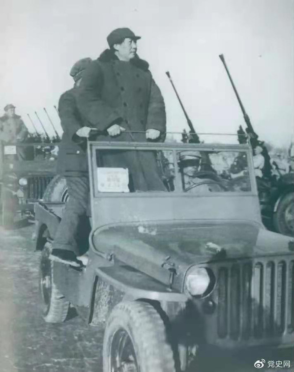 1949年3月25日,毛泽东在北平西苑机场检阅部队。