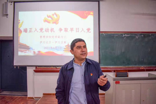 最后,伊力达尔·伊力亚斯老师向全体入党积极分子寄予美好的期望,他希望入党积极分子们努力学习,热爱党,热爱祖国,做班级里团结同学和良好风气的引领者,为祖国的未来添砖加瓦。