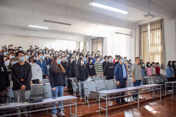 全体起立,唱国歌。