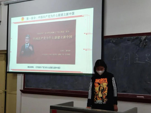 首先,由团支书带领大家学习中国共产党建立新中国,使旧中国焕然一新的原因并观看党史微课视频。视频中展现出一幕幕中国共产党人克服艰难险阻的勇气与决心,弘扬了中国共产党伟大的精神,抒写了中国共产党的伟大篇章。