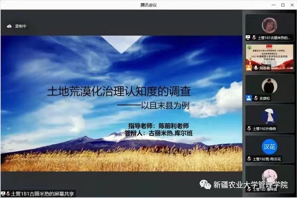 本活动通过“线下+线上”的形式展开。出席交流会的评委有王承武副院长、教学办主任李玉老师、国土资源管理系陈前利副教授、阿依吐尔逊·沙木西副教授、刘志有副教授、学工办张俊杰老师。交流会由陈前利副教授主持。