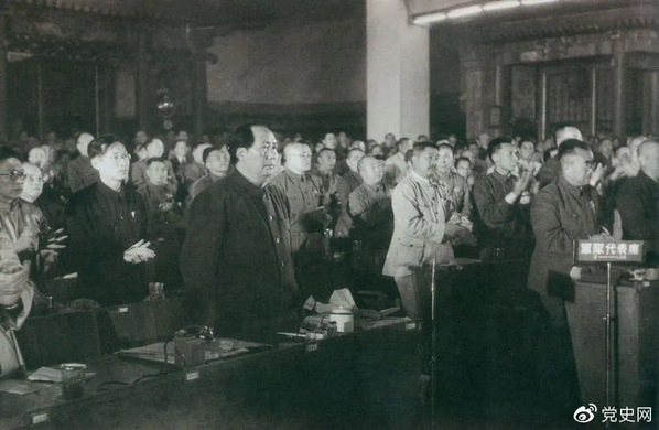 1949年9月30日,毛泽东当选中华人民共和国中央人民政府主席,全场起立,鼓掌祝贺。