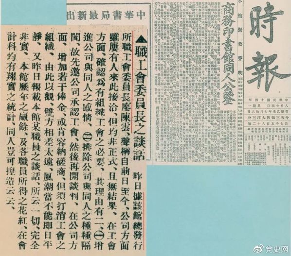 1925年8月24日,上海《时报》刊载的陈云在商务印书馆大罢工第二天发表关于争取组织工会自由作为取得这次罢工斗争胜利的最基本条件的谈话。