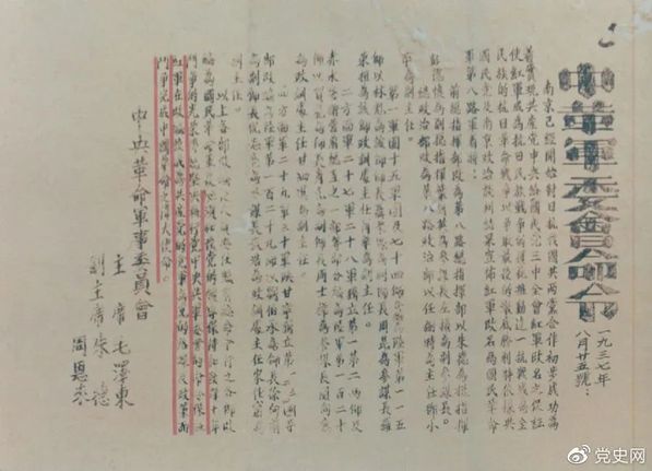 1937年8月25日,毛泽东和朱德、周恩来发出的关于红军改编为国民革命军第八路军的命令。