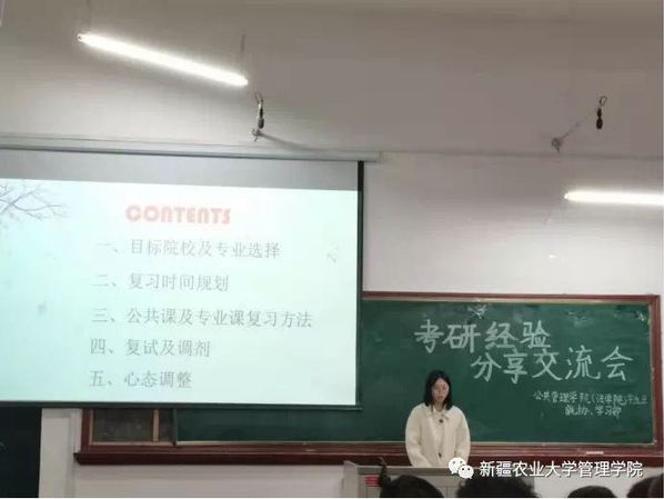 本次活动邀请了考研成绩优异的陈俏、柏鹏飞、霞拉帕提·别尔克、屈友琪、姬文涛和梁秋霞为同学们传授经验、提供备考指导,从而帮助大家更好地确定自己的目标与方向,规划未来发展道路,最终达到发展的目的。