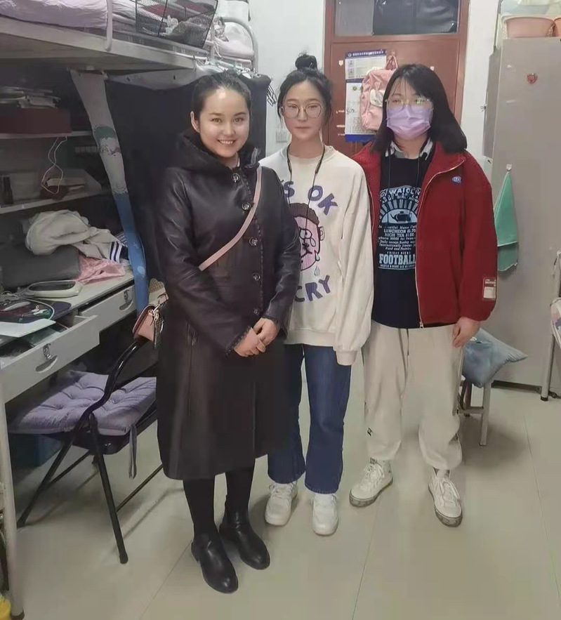 老师们进入宿舍积极关心同学们的日常生活,与同学们洽谈假期愉快时刻。但也提醒同学们疫情防控仍处于常态化阶段,要按照要求做好核酸检测,宿舍常通风,做好自我防护。与此同时,老师叮嘱同学们,正值开学季,要谨防泛滥的电信诈骗,下载国家反诈中心应用软件,如遇到各种问题及时和老师及辅导员反映沟通,社区民警拨打的电话要注意收听,保护好自己的个人财产。