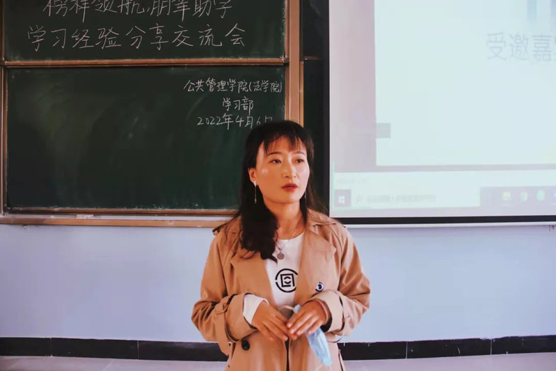 为加强学院学风建设,积极营造优良学风氛围,以优促学,发挥朋辈榜样引领作用,明确学习目标,公共管理学院(法学院)于2022年4月6日19:00在1305教室举办了“榜样领航,朋辈助学”学习经验分享交流会活动。