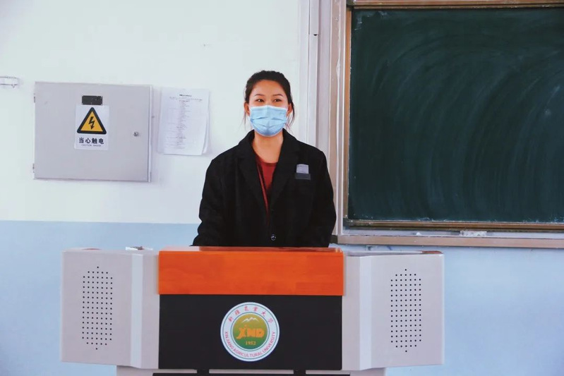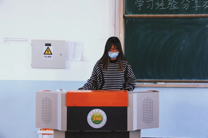 颜美美同学主要讲了第二课堂学识的获取,建议同学们积极参加学校、学院组织的活动,以一个良好的心态面对生活和比赛。