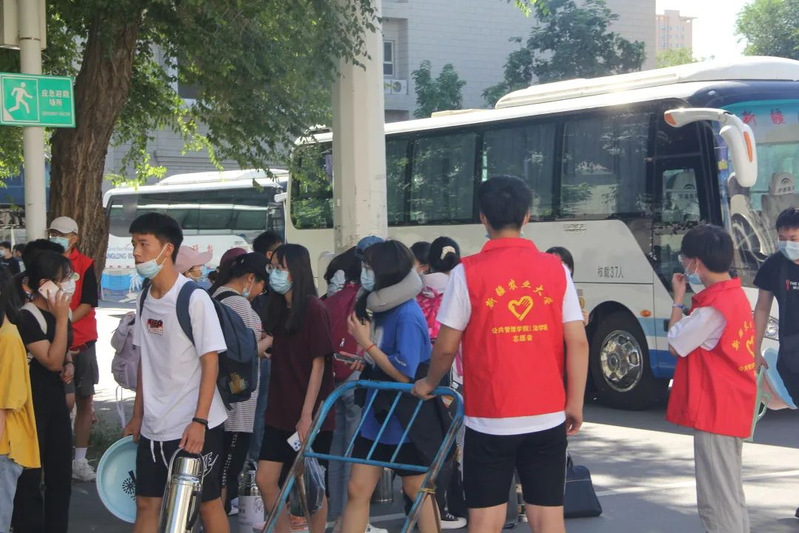 一遍遍的接行李、一次次的贴心引导,学院的志愿者同学们用行动诠释着在校园里等候多时的坚定和迎接他们的动力。