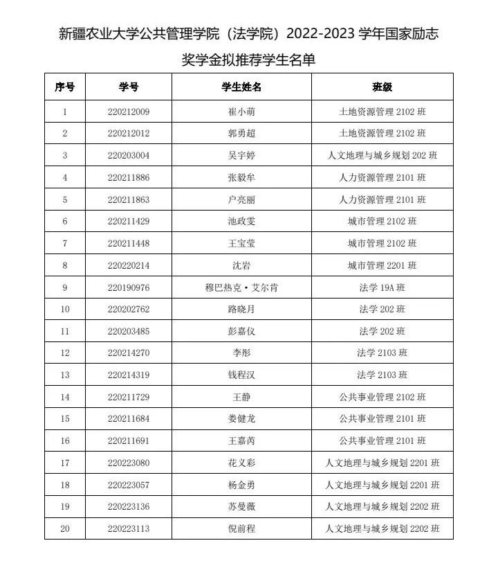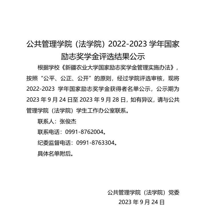 公共管理学院(法学院)2022-2023学年国家奖学金评选结果公示