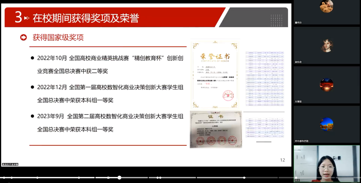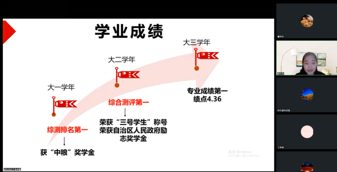 经过各班级推荐及学院初审,参加本次评审会议的共有9位候选人,面试答辩前采用抽签的方式决定答辩顺序,依次上台答辩。他们分别从个人简介、思想政治、专业知识、综合素质、未来规划等多个角度进行展示,评委老师通过同学们的答辩情况对其学习、生活、创新思维等方面进行了提问。