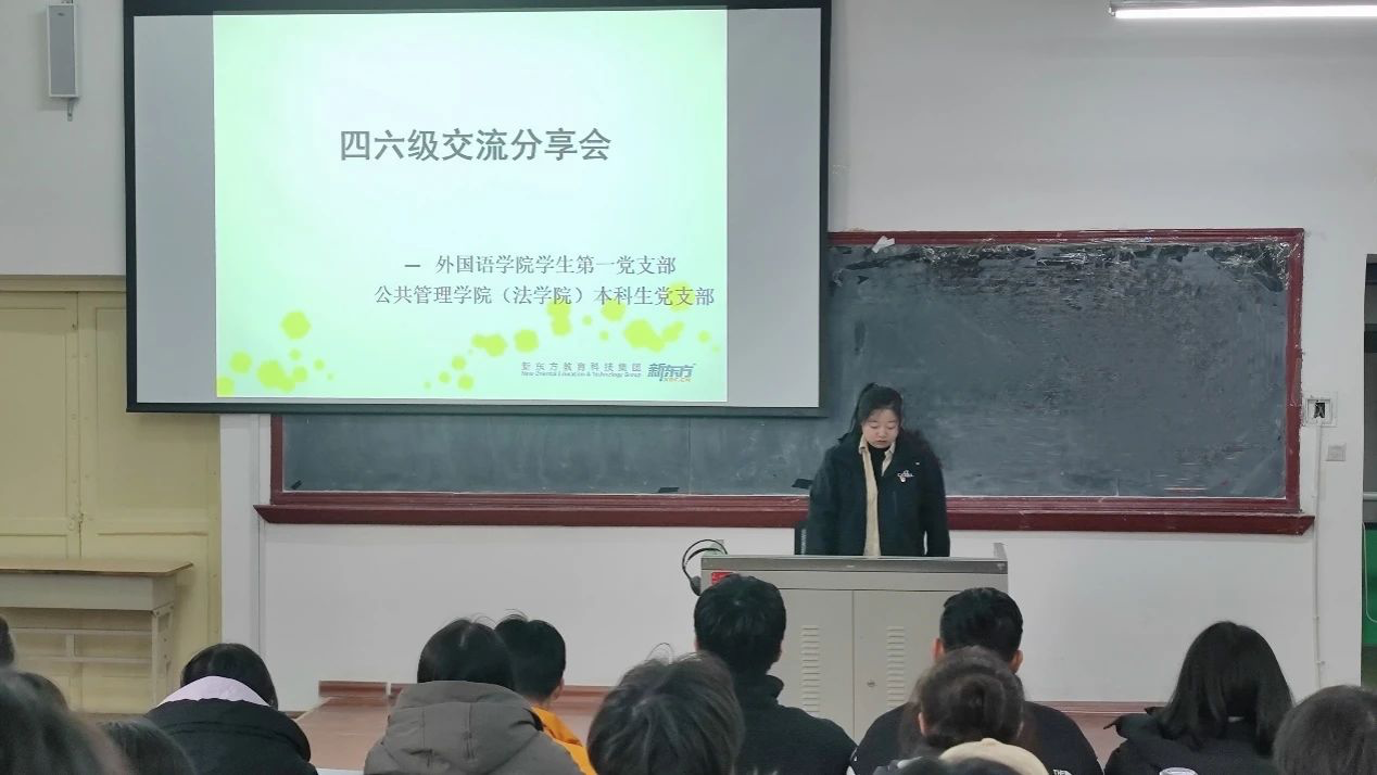 为更好地帮助同学们深刻认识四六级考试的重要性,充分了解考试内容形式,掌握英语四六级考试的应试技巧,我院本科生党支部与外国语学院学生第一党支部于11月12日下午在三号楼10216教室联合开展四六级经验分享交流会,旨在传授英语学习经验,提高学生学习英语的能力,并为即将到来的英语四六级考试打下基础。