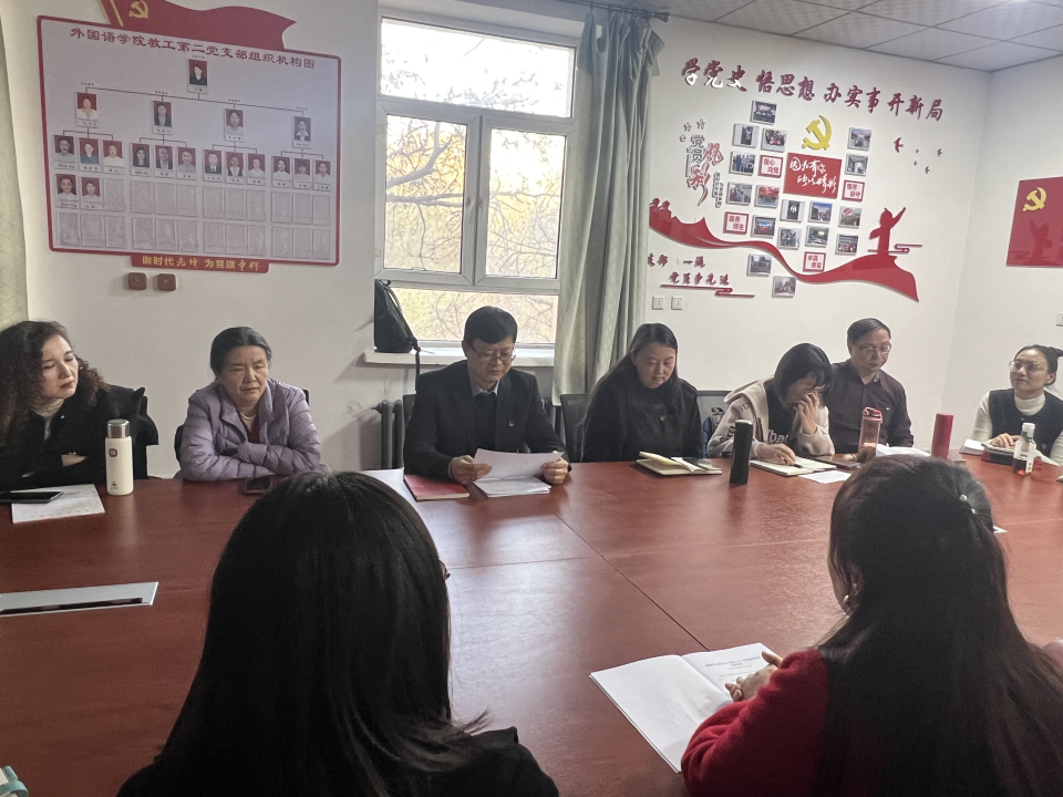 为促进党支部之间的党建和教学工作的互相学习、借鉴及提高,2023年11月8日下午,外国语学院教工第二党支部特邀我院教工第三党支部开展了一场主题为“向标杆支部学习,以党建促进专业团队建设”的联合主题党日活动。
