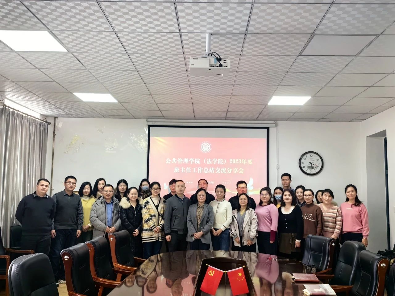 为进一步加强学院班主任队伍建设,及时总结和推广班级管理经验,切实提升班主任的专业素养和管理水平,充分发挥班主任在人才培养中的重要作用,公共管理学院(法学院)于1月5日在学院二楼会议室召开2023年度班主任工作总结交流分享会。学院党委副书记、纪委书记吴俊辉、全体辅导员及班主任参与会议。会议由辅导员张俊杰主持。